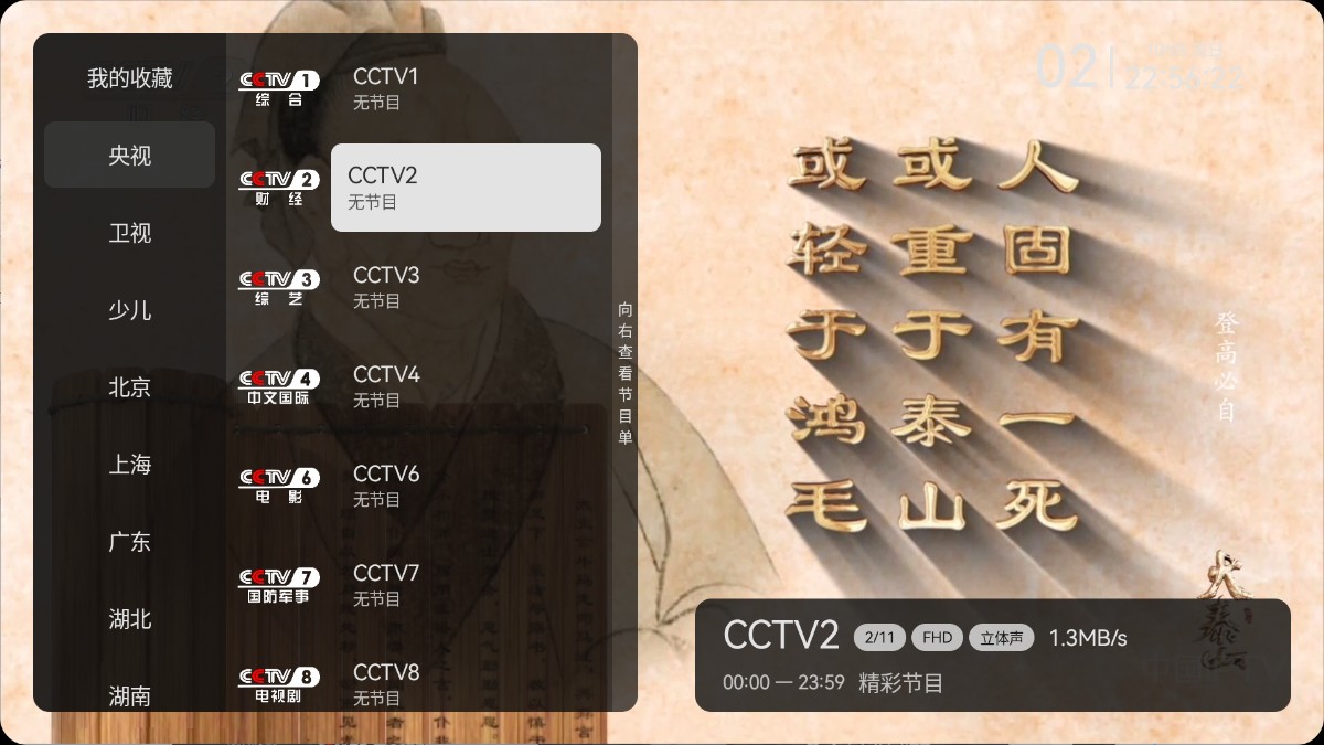 7、节目预告,内置 EPG 预告,让用户提前了解各频道的节目安排,方便合理规划观看时间。