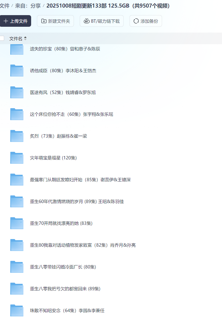 【短剧】20251008短剧更新133部 125.5GB(共9507个视频)