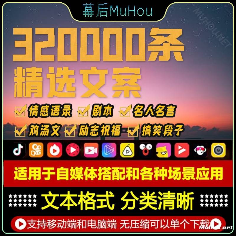 淘宝爆款《320000条精选文案》,汇集32万条优质金句! 3.88G