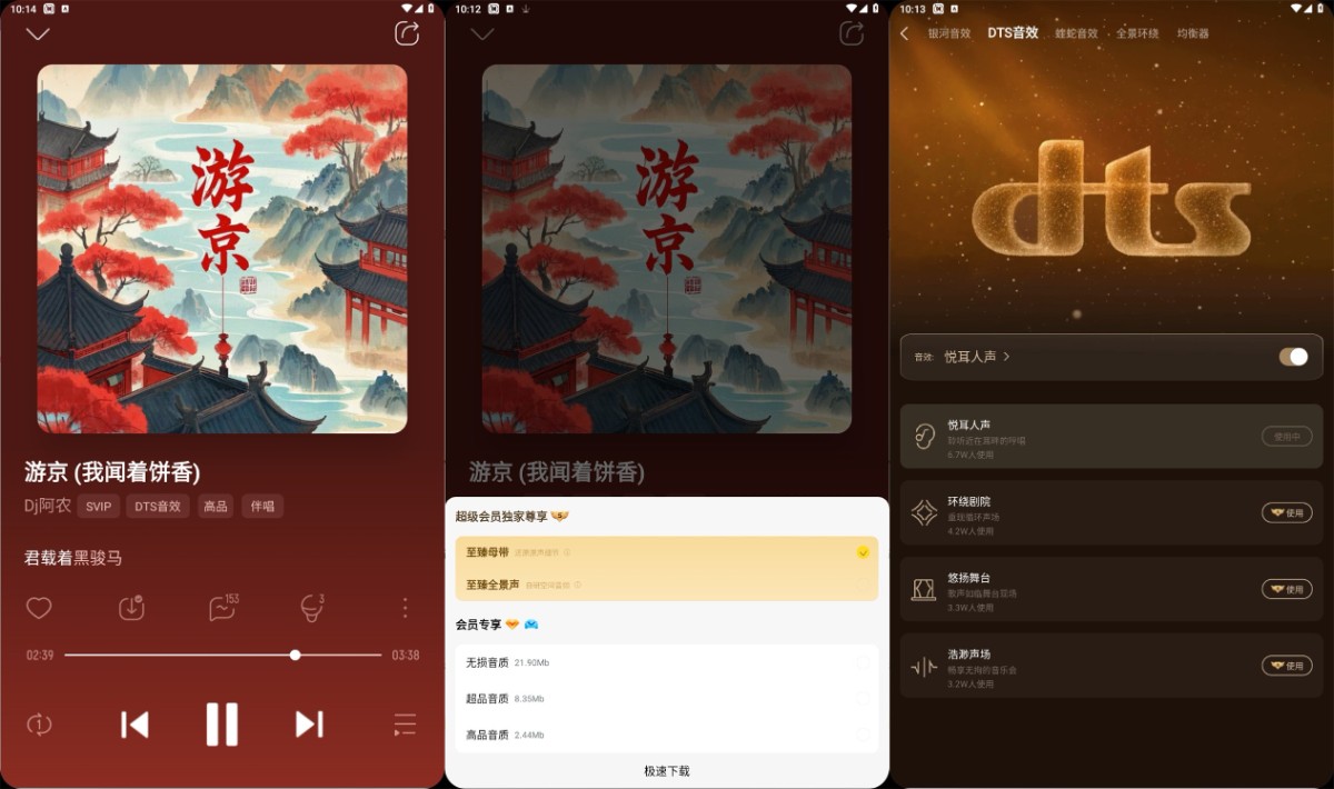 3D全景声:模拟多声道环绕效果,营造身临其境的听觉空间,特别适合听现场演唱会、电影原声;