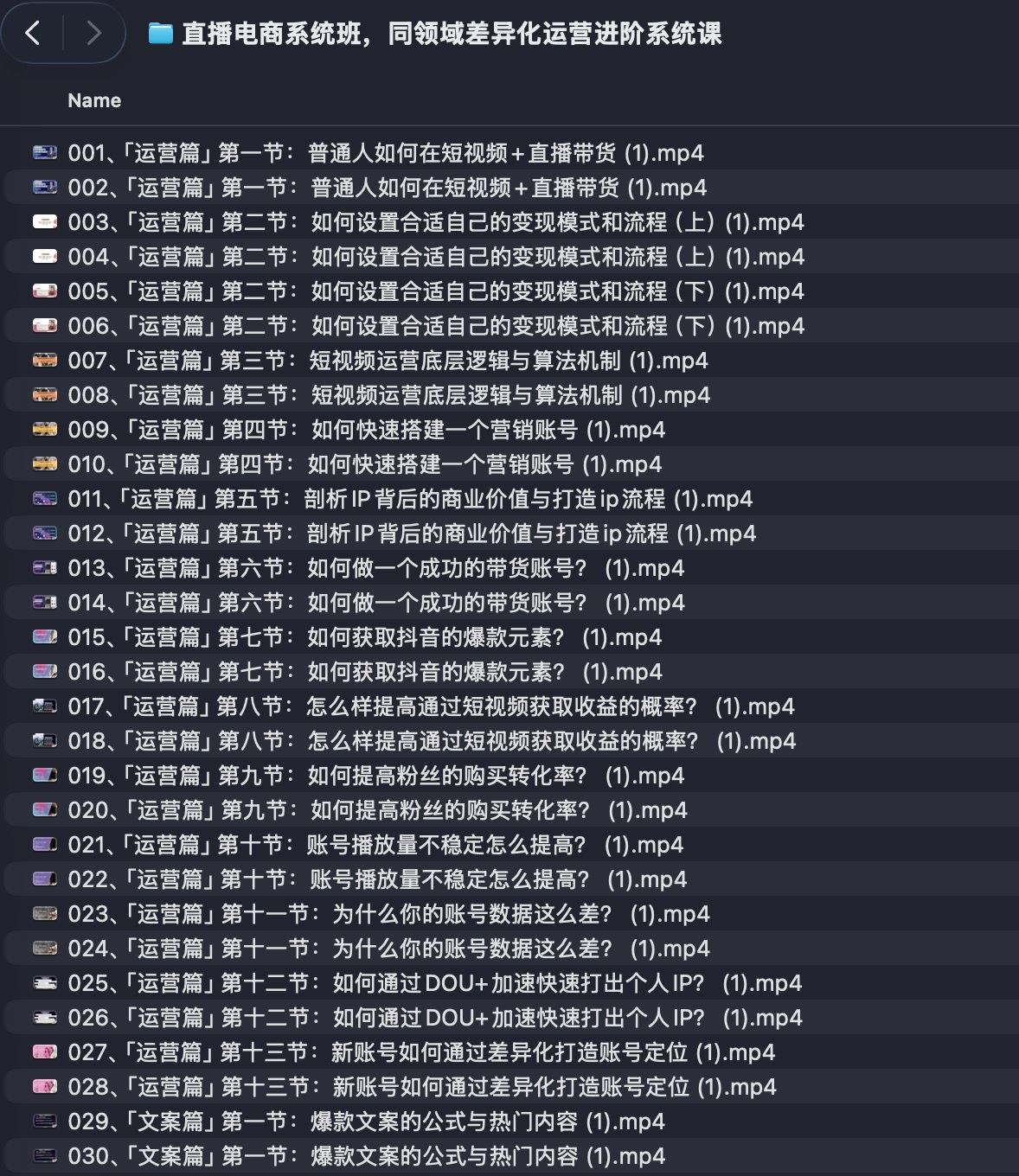 这是一门围绕“同领域差异化运营”的系统课,面向短视频与直播带货团队与个人创作者,整体结构分为六大模块:运营、文案、拍摄、剪辑、主播技能、直播运营与投流。目标是打通“定位—内容—场景—话术—投流—数据复盘”的闭环,形成可复用的增长方法。