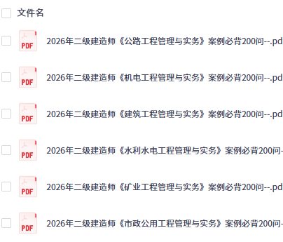 2026版二级建造师案例必背200问汇总PDF版网盘下载,这个是最新2026年二建案例必背200问系列,相关资料还有100问、300问,建议看名师版300问系列。资料来源于网络,仅供大家参考,内容如下: